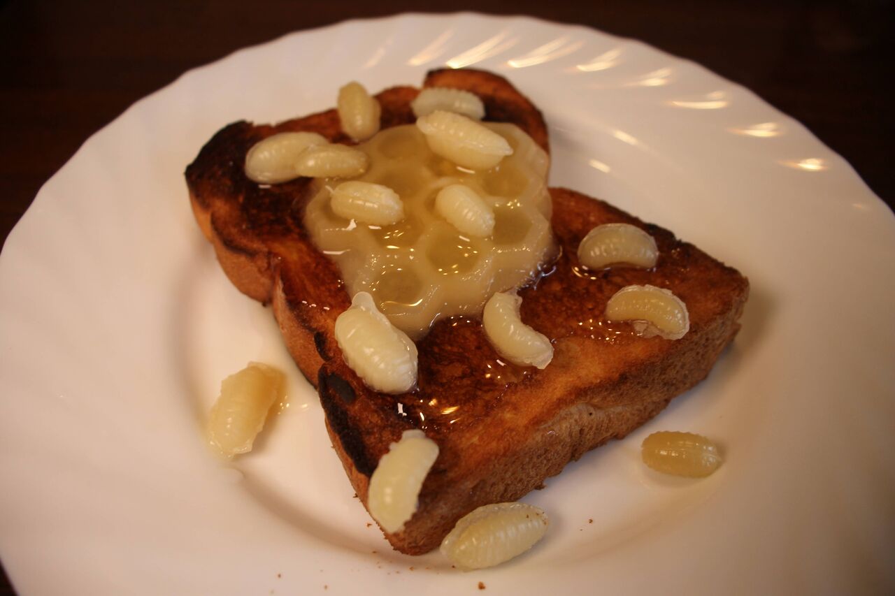 樹皮グミにハチミツをかけて舐めることでよりコーカサスオオカブト気分が味わえます