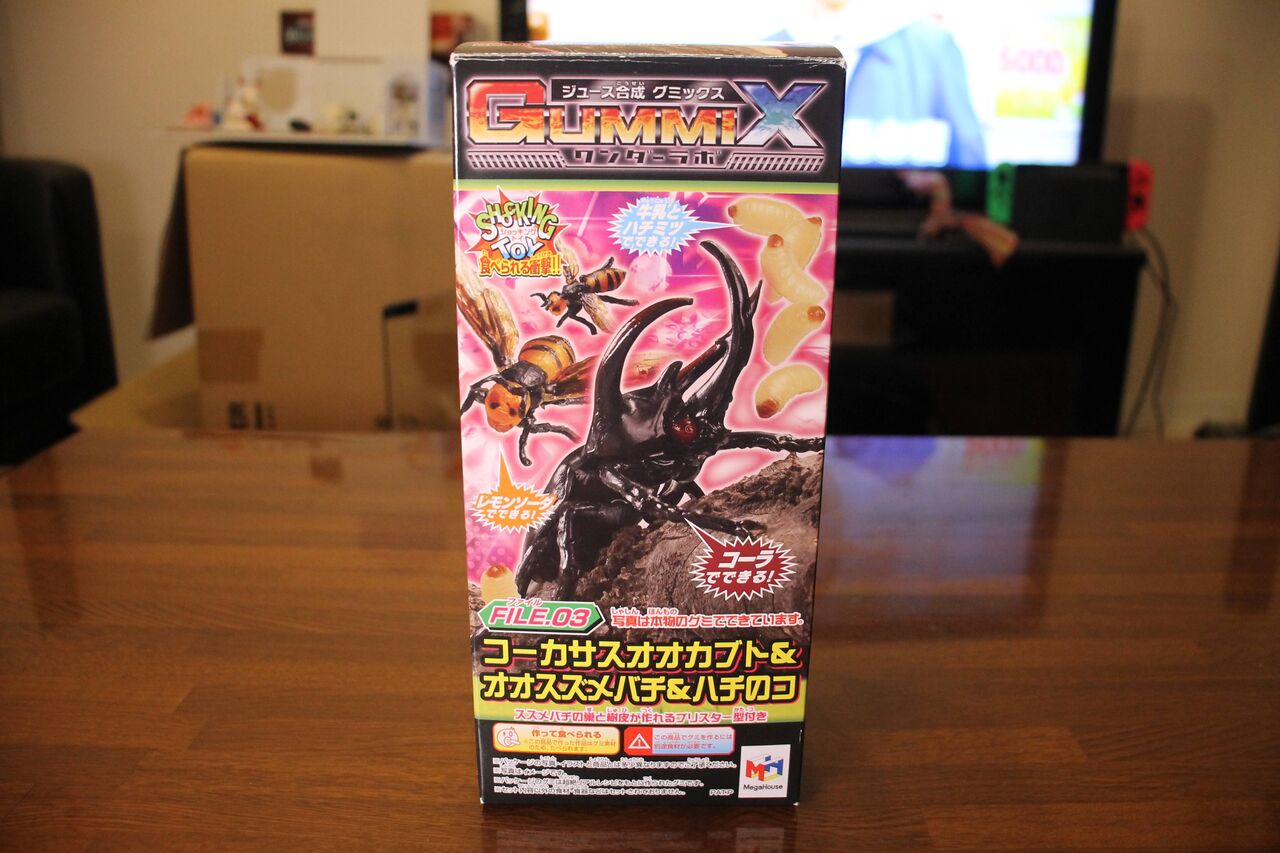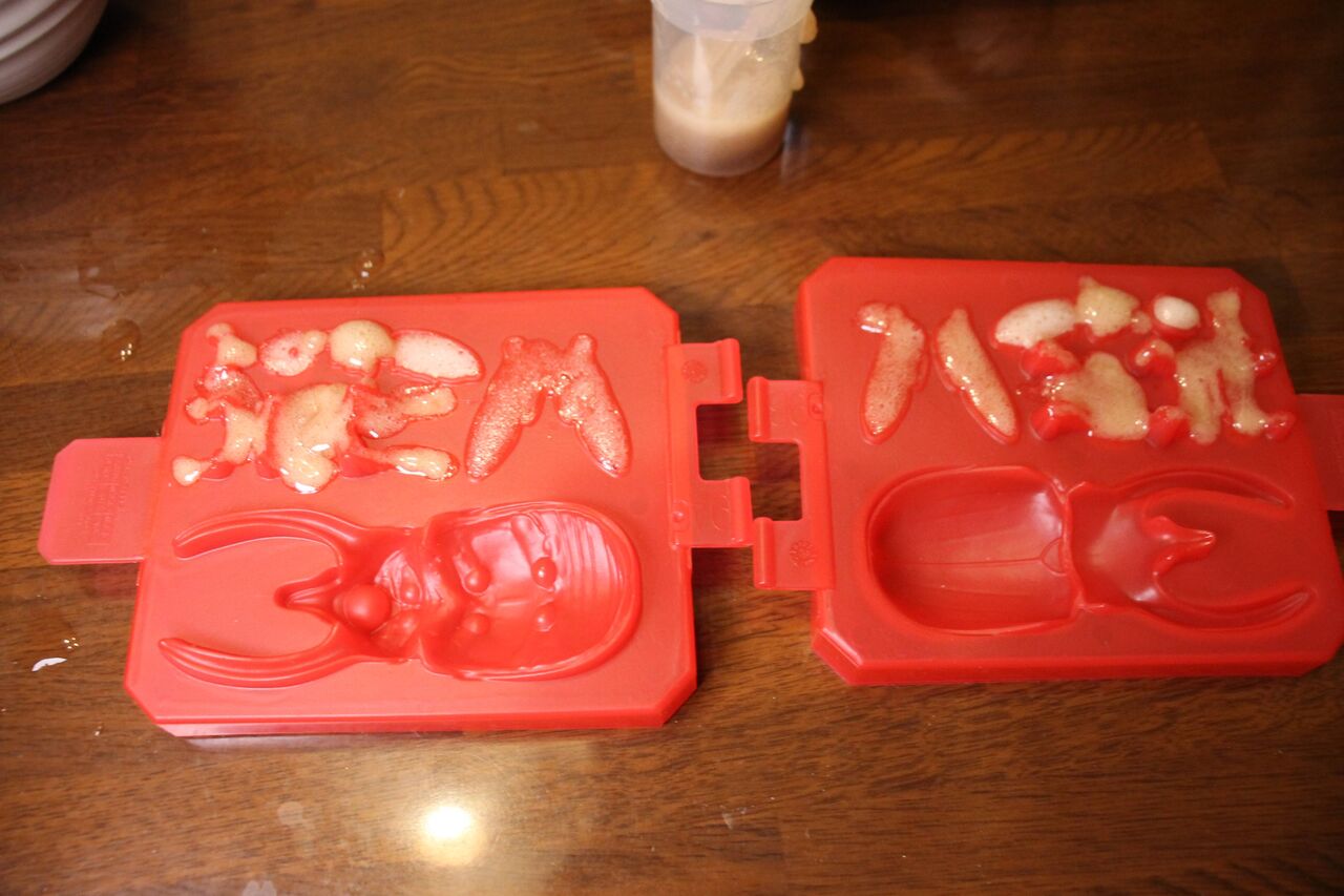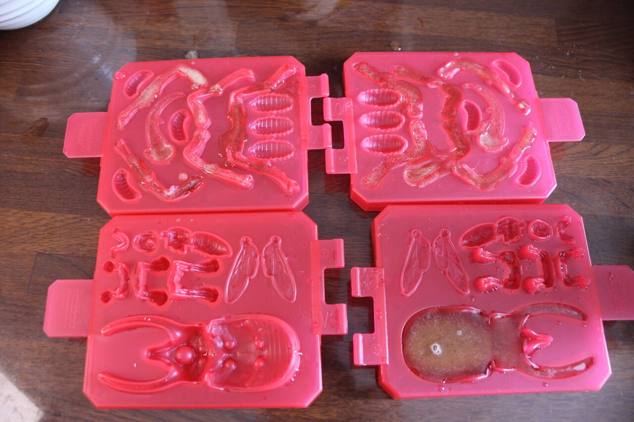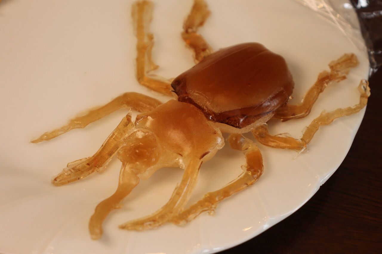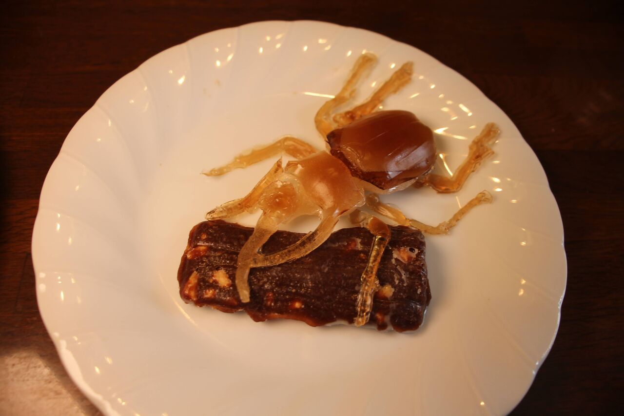 チョコレートを溶かして作った特製の樹皮型グミをコーカサスオオカブトを眺めながら食べることでコーカサスオオカブトと気持ちをシンクロさせることができる、コーカサスオオカブト好きにはたまらない一品でございます