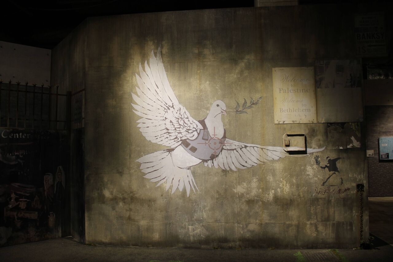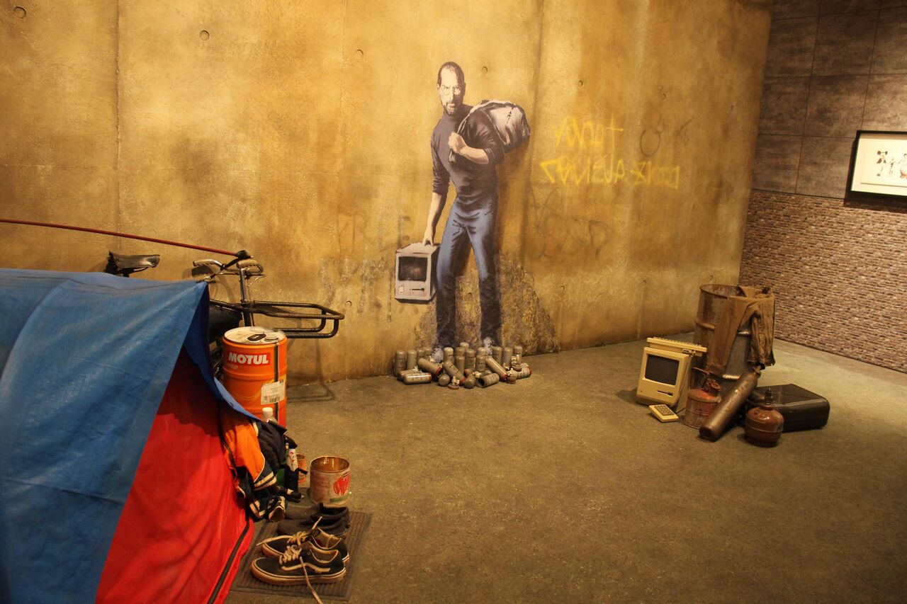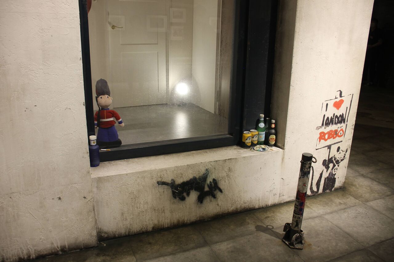 書き換えたのはストリートアーティストのキング・ロボで、バンクシーと絵を上書きし合ってバトルをしてたんやけど、ロボが事故で亡くなってバトルは終わったんやって
