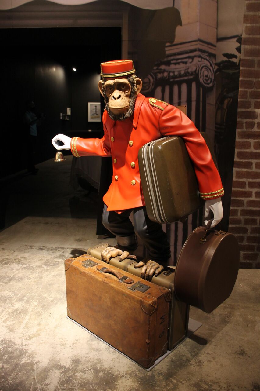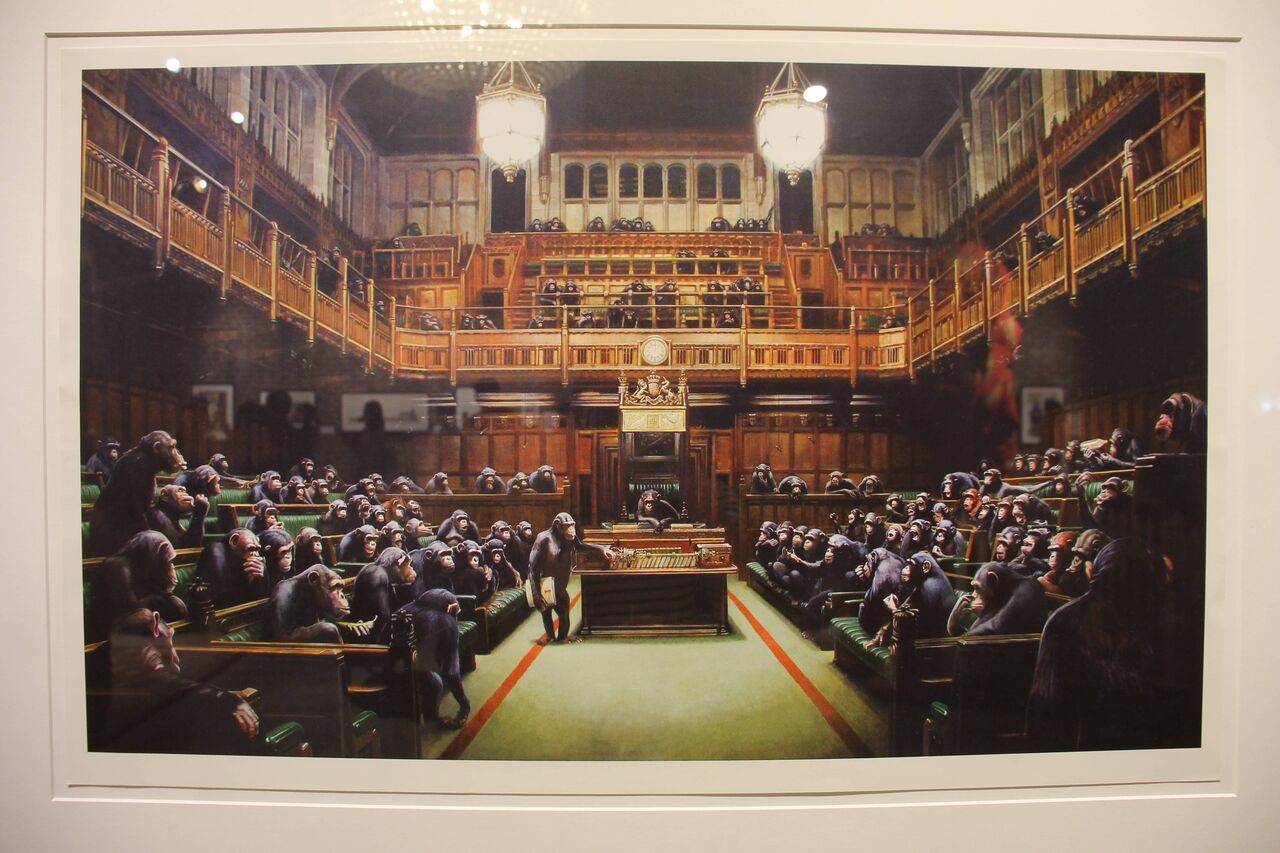 バンクシーが個展で本物のインド象に豪華なペイントをして部屋の真ん中に展示したそうで、英語で「Elephant in the room(部屋に象がいる)」という「明白な問題について誰も触れようとしない」という言葉に掛けた作品