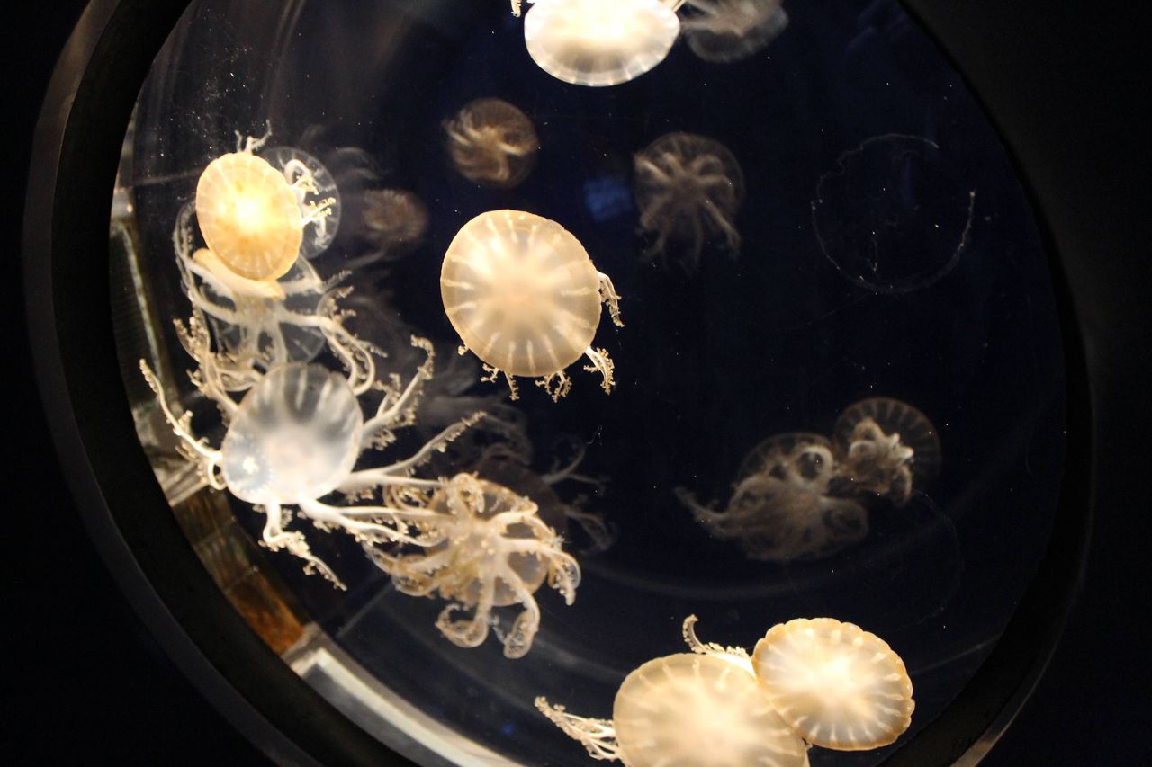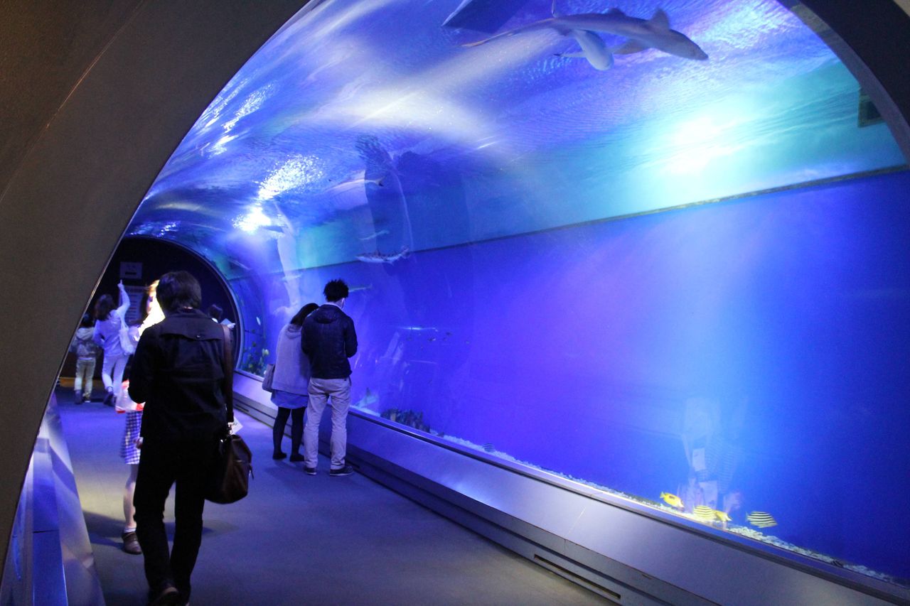 まずはこの幻想的なトンネル型水槽、アクアゲートがお客さんを出迎えるで