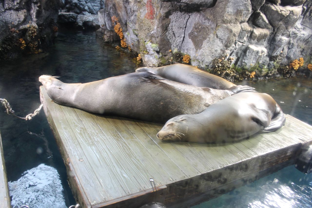 各水槽をアリューシャン列島、南極大陸、瀬戸内海といった各海ごとにモチーフを分けて展示してる所やね