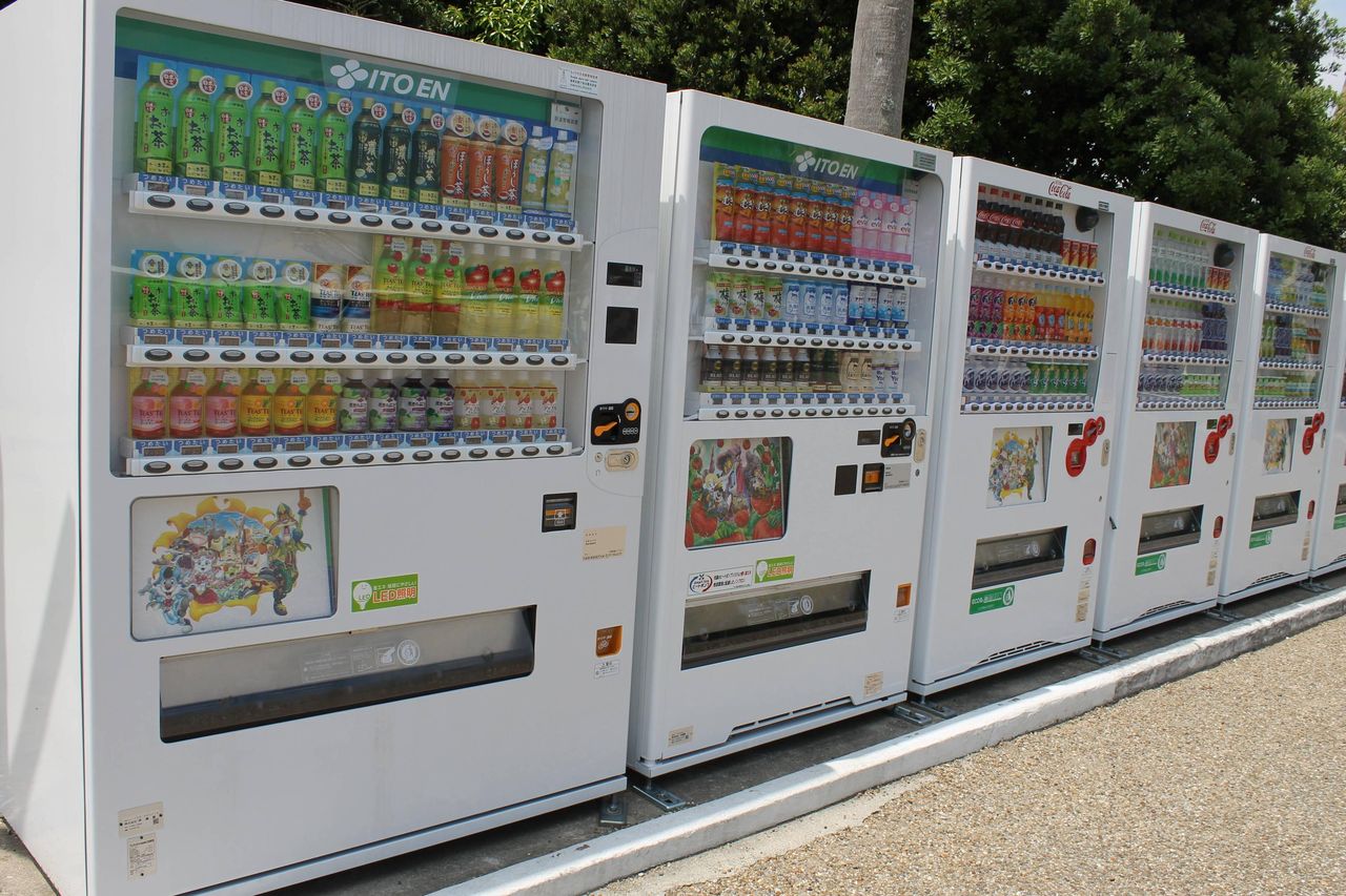 エントランスの自販機はパルケ・エスパーニャのイラストが描かれてる特別仕様や