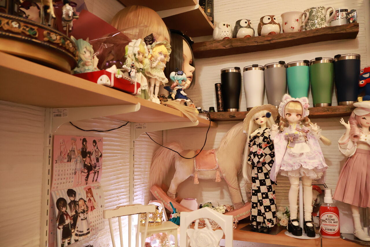 ピンク色の可愛い扉を開けると、たくさんのドールやぬいぐるみがあふれる素敵空間が広がっています!