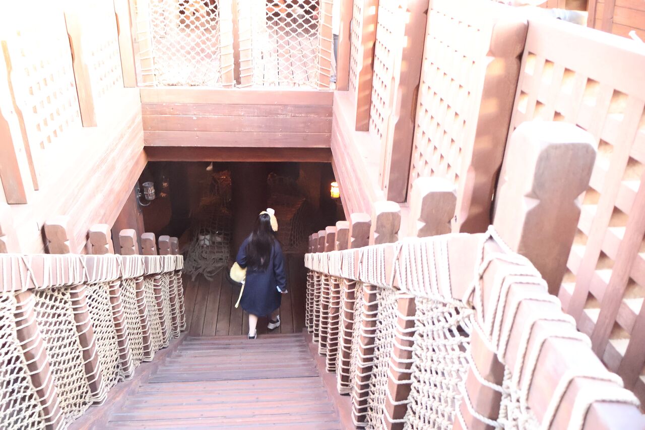 パパ「船内には遊べる仕掛けがいっぱいやで。ディズニーシーのアリエルのプレイグラウンドに発想は似てるかも」