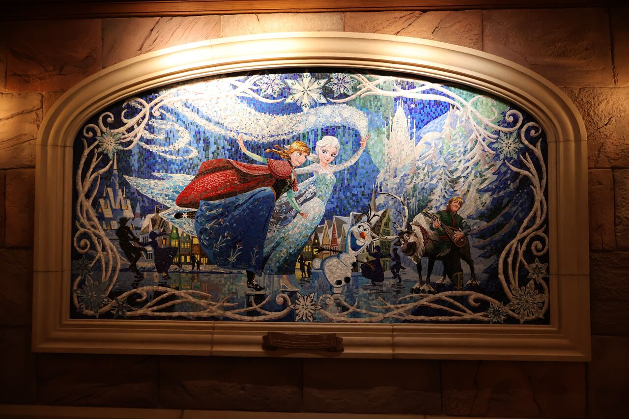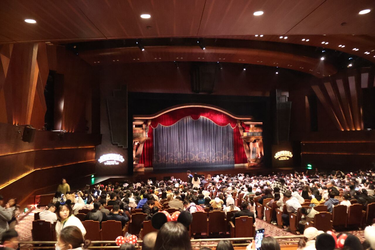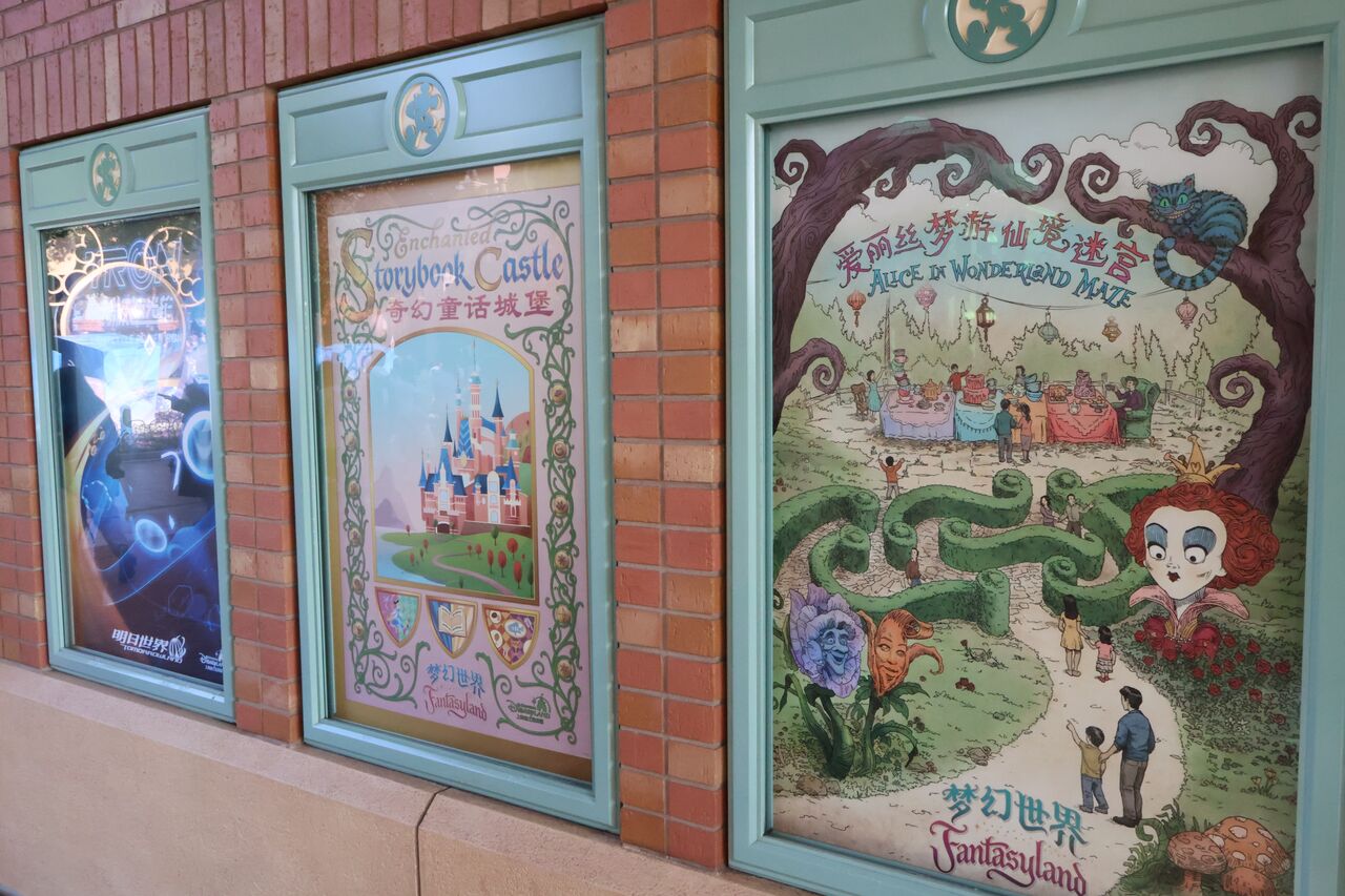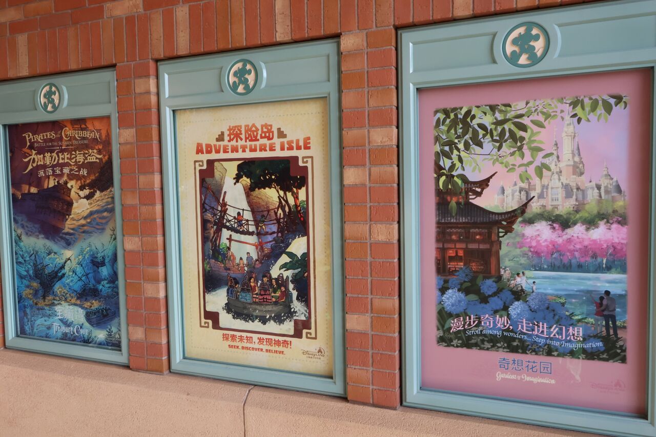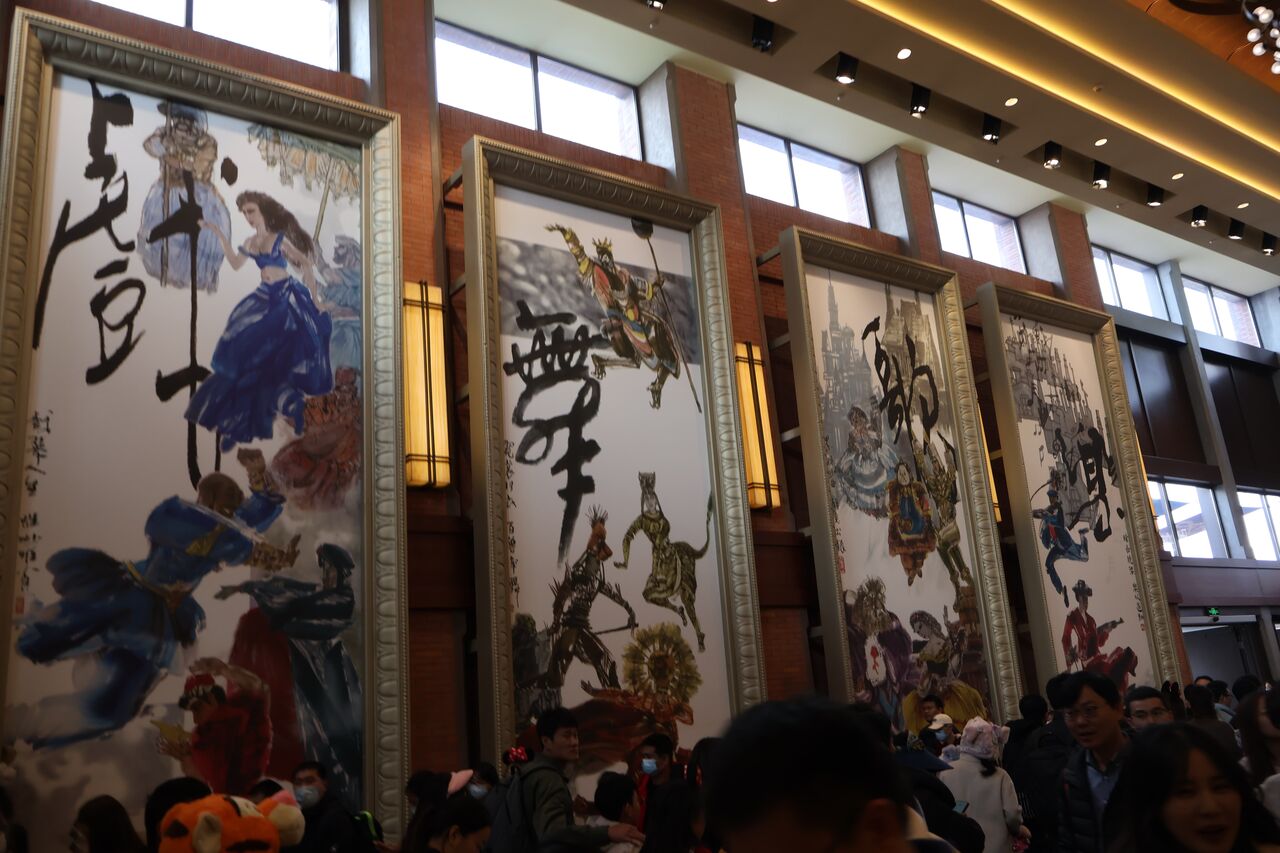 パパ「ショーのロビーがすごくて、色んなディズニー作品を中国風のイラストにしたタペストリーが飾られてたわ!こういうの海外のディズニー来た感じがしていいよね!」
