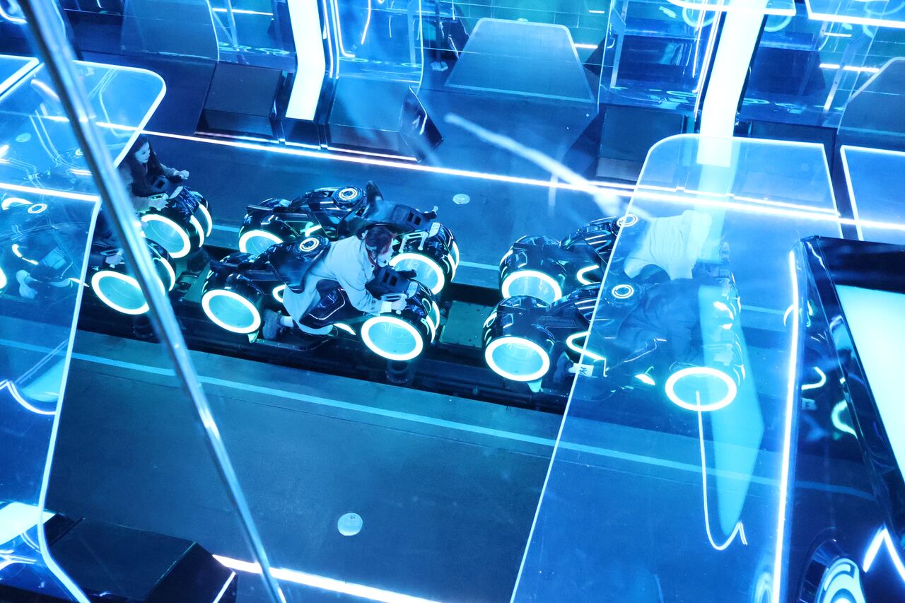 パパ「トロンはこういうバイク型の乗り物のジェットコースター。ディズニーパーク世界最速の乗り物!待ち時間も100分近い人気のアトラクションや」
