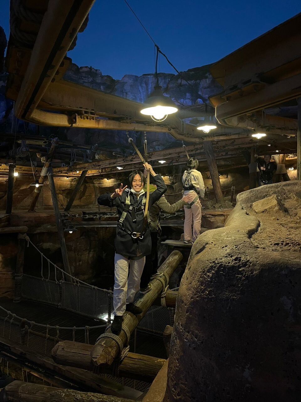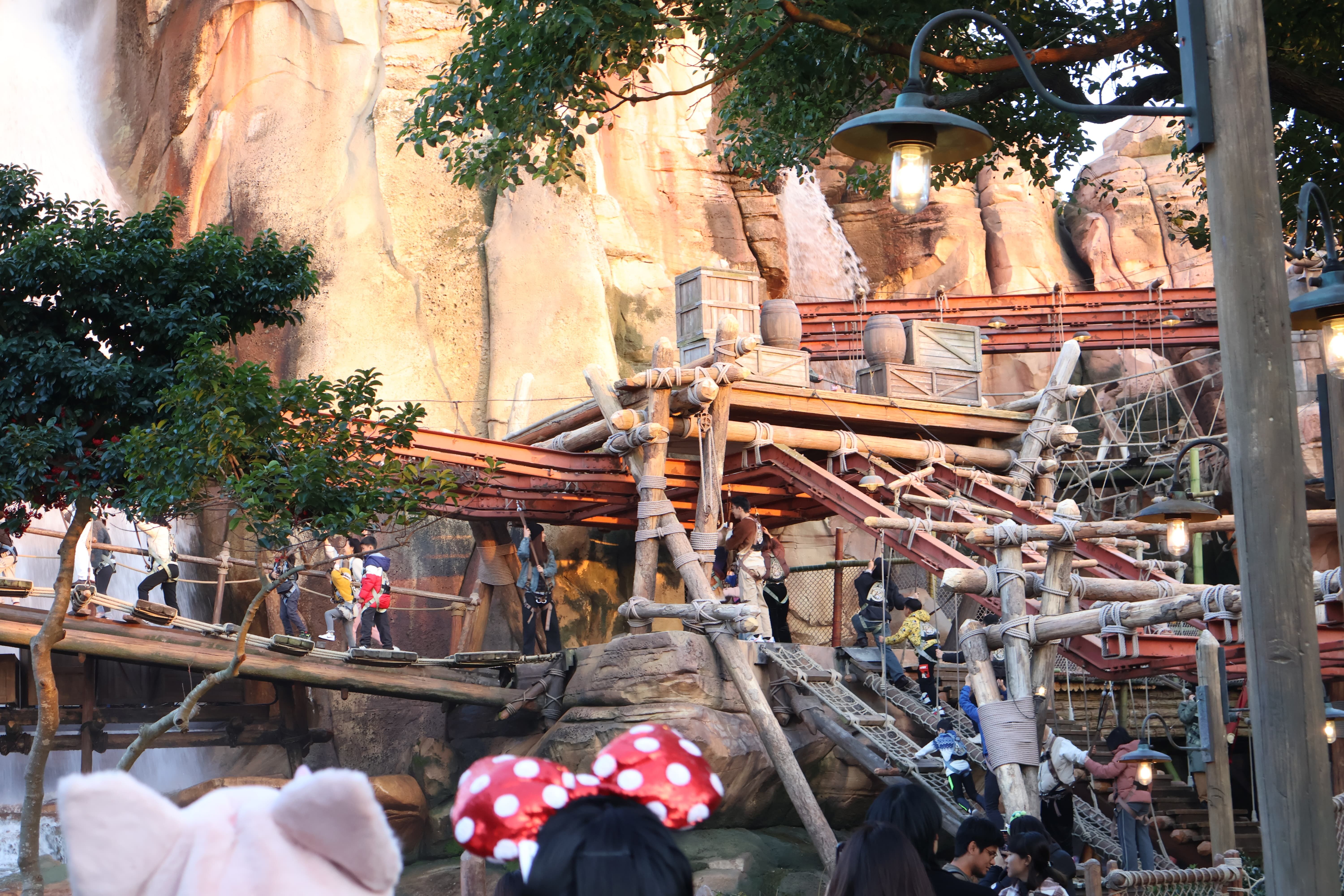 パパ「これは命綱をつけて悪路を踏破していくアスレチックのアトラクションで、自分の肉体と体力を使うディズニーで一番ハードかつ高所恐怖症の人は絶対無理なアトラクション!」