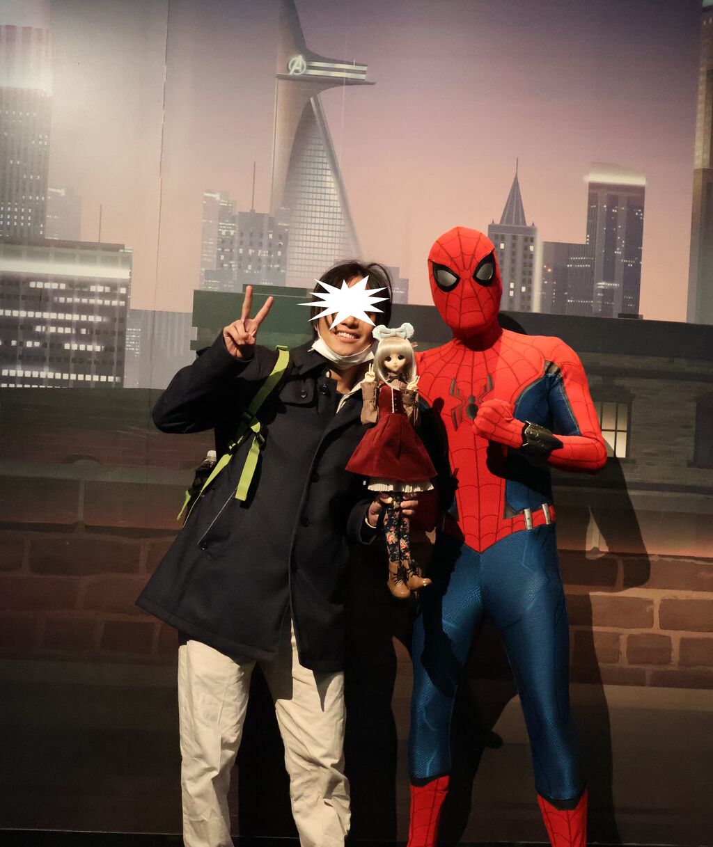 パパ「このマーベルエリアはアトラクションはないけど、キャラクターとのグリーディングはあるで!今回はスパイダーマンと写真撮った!」