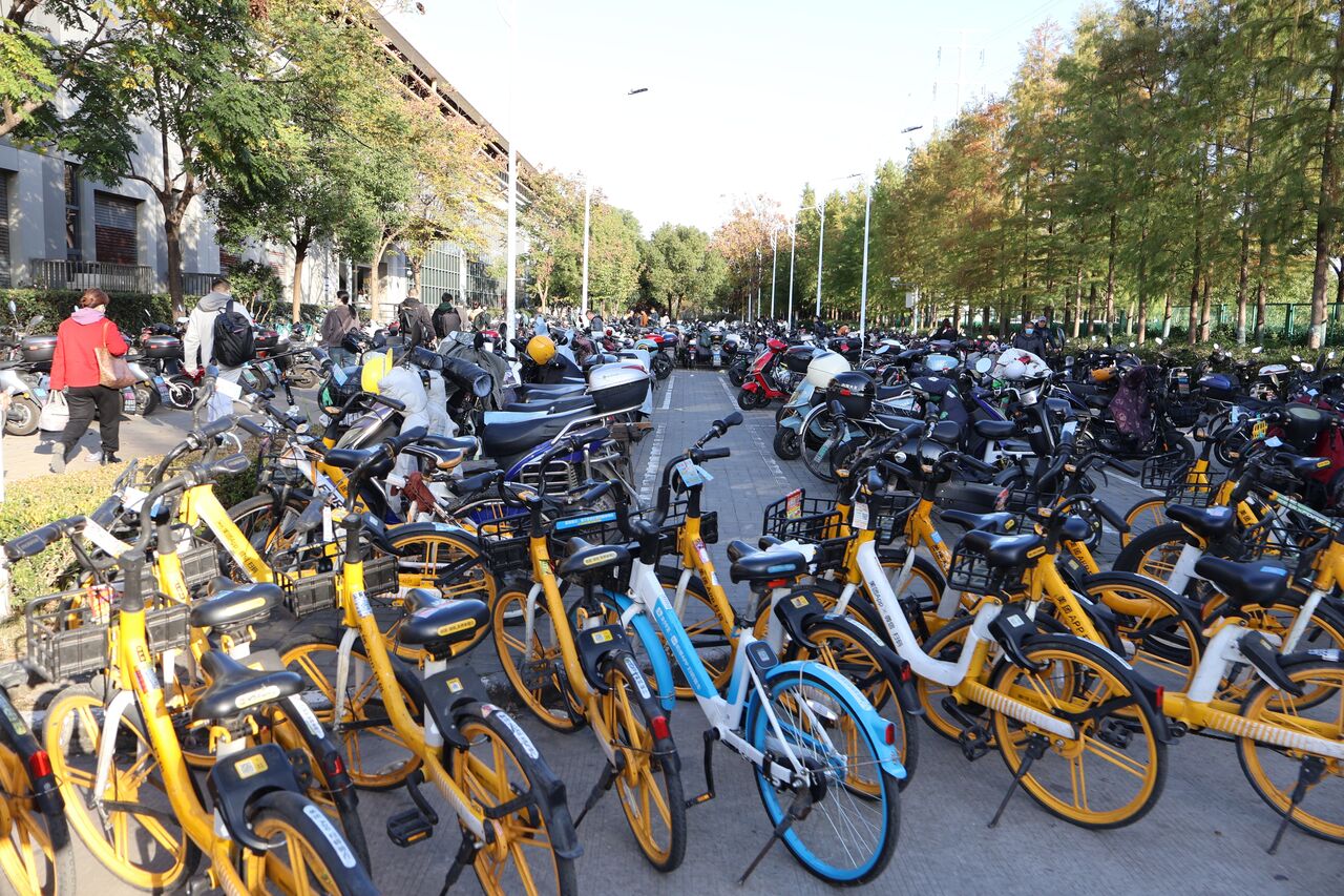 パパ「駅の前にはずらっと電車と原付が。なかなか迫力ある光景!」