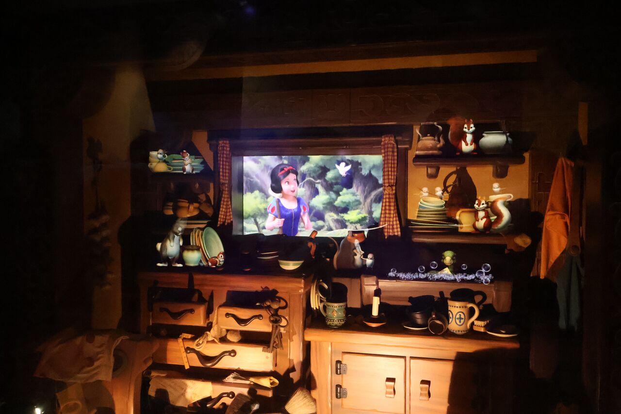 パパ「城を散策しつつ白雪姫の物語を辿っていくウォークスルータイプのアトラクションになってるで」
