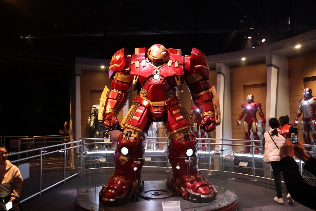 パパ「施設の中はこんな感じで展示メインのエリアになってるで。歴代のアイアンマンスーツが並んでるのが壮観やね!」