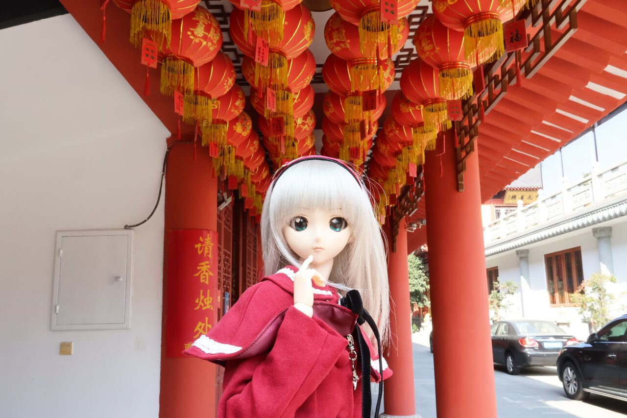 ユイリちゃん「長かったー!20分くらい歩いたね。黄色で可愛いお寺だね」