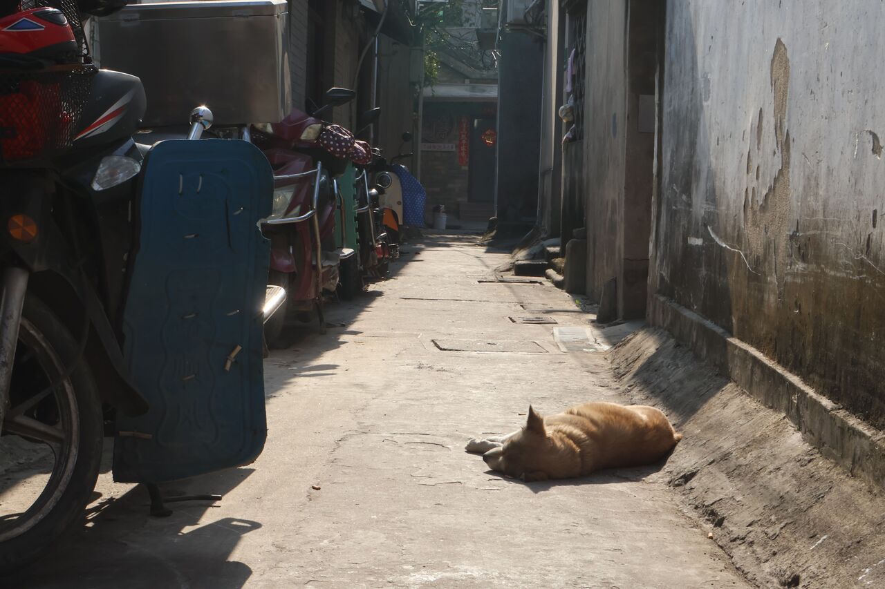 パパ「またまた上海動物シリーズ! 多分野良犬かな? 近づくと起き上がって威嚇してきたんやけど、後ろから来た車にクラクション鳴らされてしっぽ巻いて逃げて行ったわ」