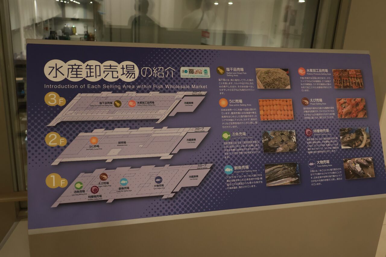 パパ「豊洲市場は主に、水産卸売場棟と水産仲卸売場棟と青果棟を見学できるで」
