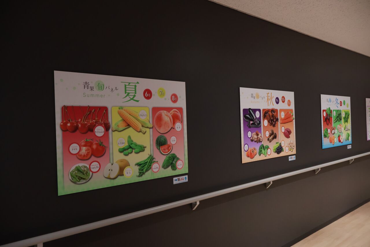 パパ「旬の野菜や果物の情報のパネル展示もあるで」