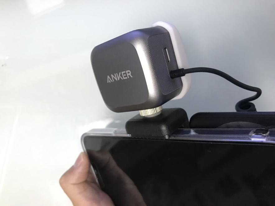 写真には光がなにより大切なので、iPhone用の外付けフラッシュ「Anker iPhone LED Flash」も装着しています。