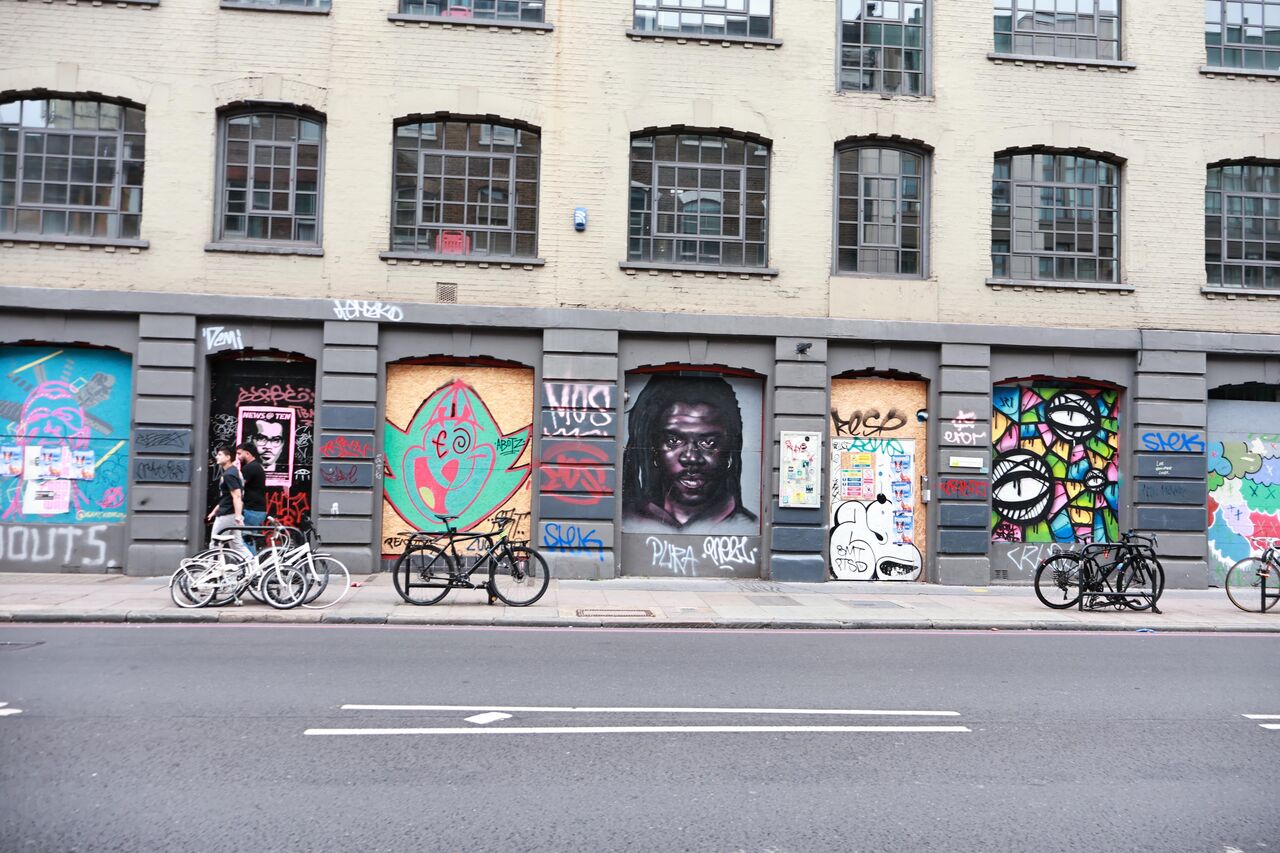 1888年当時は貧民街やったけど、現在のブリックレーンはヴィンテージマーケットやストリートアートの聖地になってるで