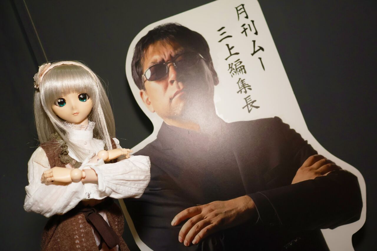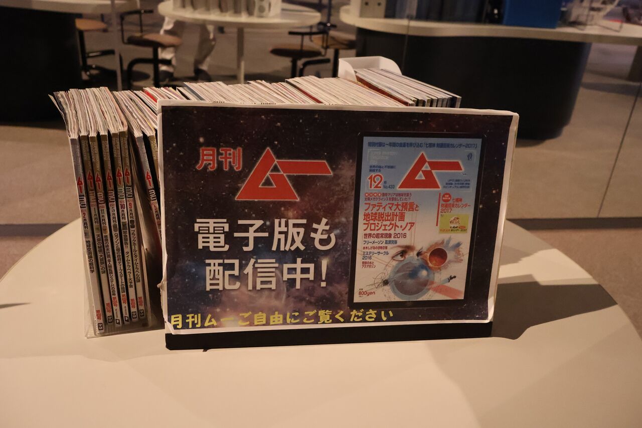 パパ「UFOと言えば月刊ムー!三上編集長の等身大ポップがあるで!その周辺はムー展示エリアみたいになってて、一気にオカルト臭が!笑」