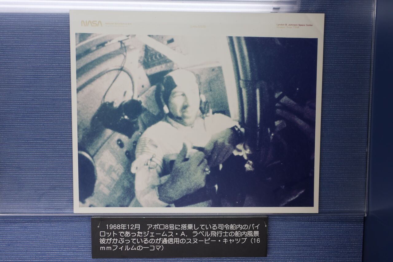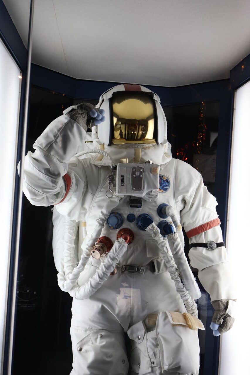 パパ「船内服も展示されてるで。最後に月面から帰還したアポロ17号の船長、ユージン・サーナン宇宙飛行士が実際に着ていたものをサーナン宇宙飛行士から特別に許可をもらって展示してるで」