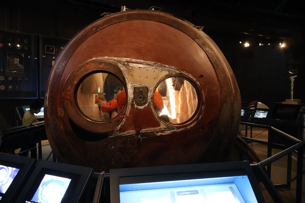 パパ「展示されてるこのボストーク宇宙船は実際に宇宙から帰還した実物なんやって。大気圏再突入時の摩擦熱の焼け跡とか地表に激突した時の傷跡とかも見れるで!」