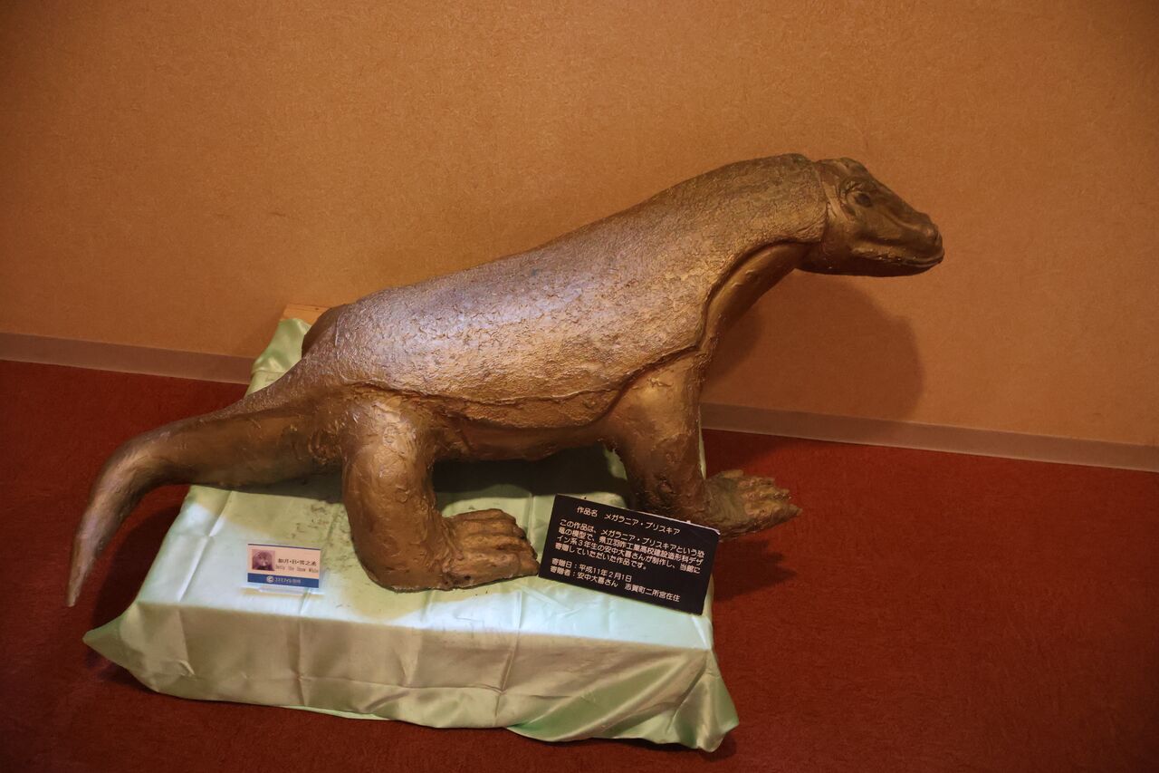 パパ「こちらはメガラニア・プリスキアっていう恐竜の模型。高校生から寄贈されたものなんやって」