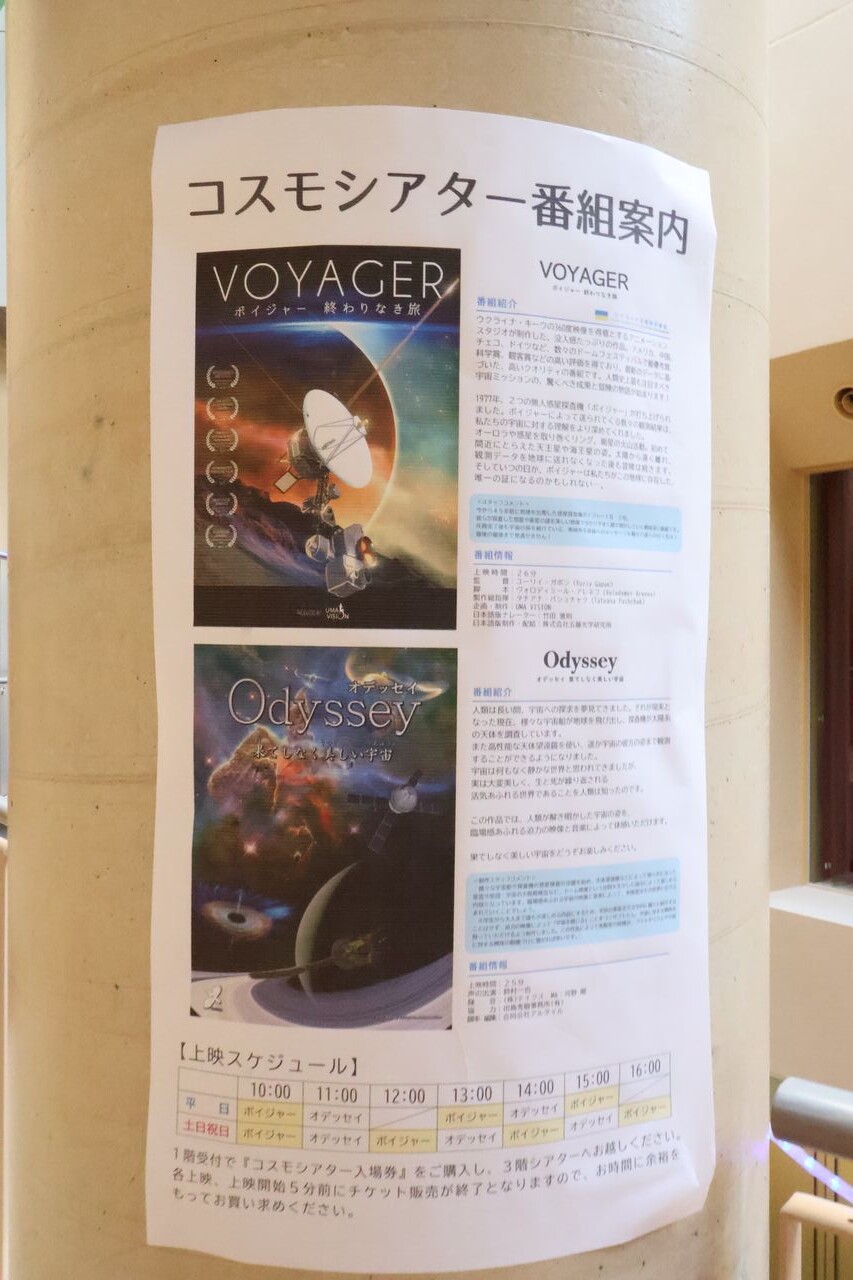 パパ「あとこの施設で特にすごいのがコスモシアター!プラネタリウムのドームスクリ-ンで宇宙に関する動画が上映されるんやけど、目の前いっぱいに広がる宇宙の映像はめちゃくちゃ壮大!」