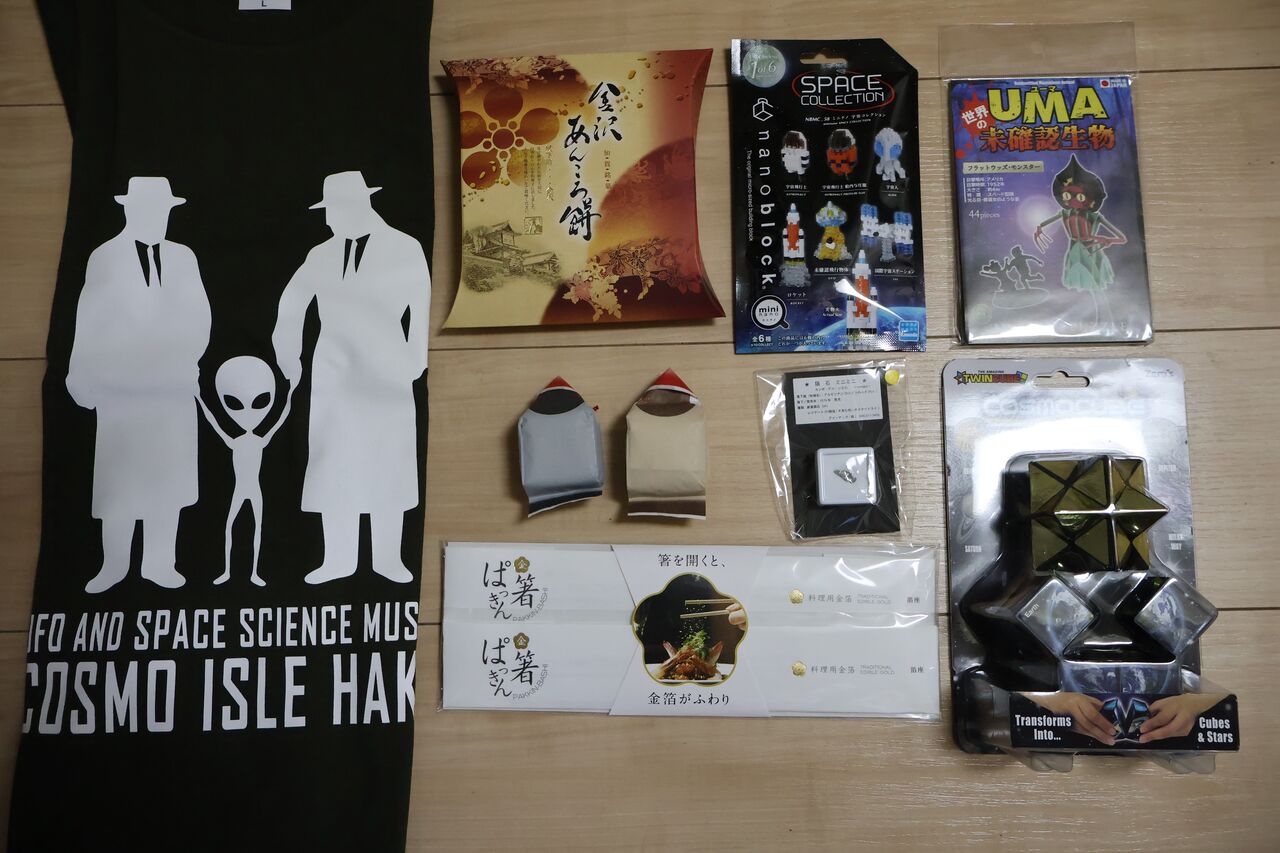 パパ「最後に二日間の金沢旅行で買ったお土産がこちら!捕獲された宇宙人Tシャツがお気に入り!」