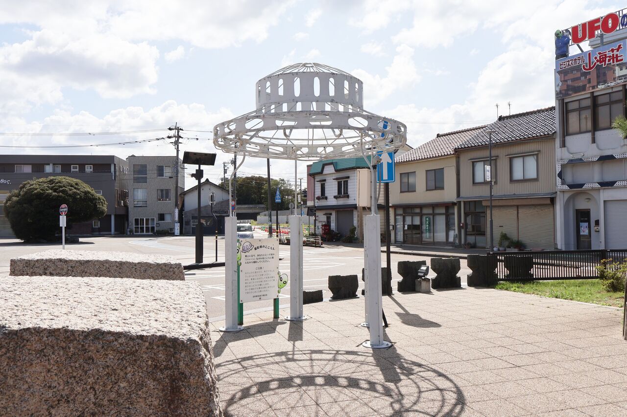 パパ「羽咋はUFOで町おこしをしていて、あちこちにUFO関連の看板やモニュメントがあるで!」