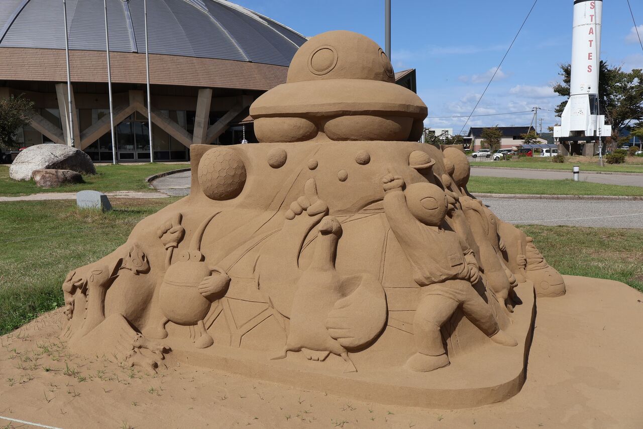 パパ「また千里浜で砂に関するイベントをやるらしくて、製作途中のポップな砂像も飾られてたわ」